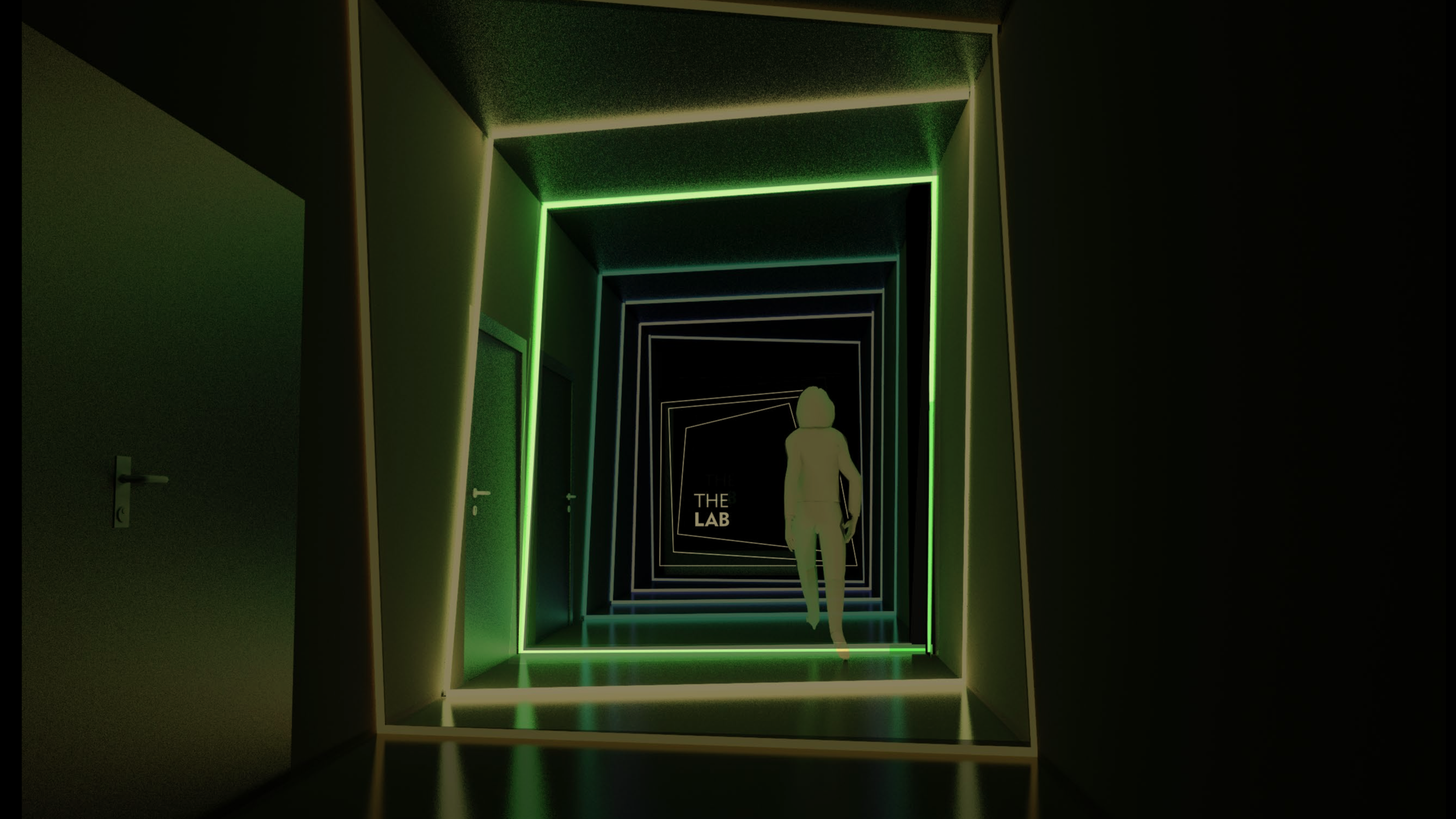 A journey from the present to Industry 4.0, leading you into the future of industrial working spaces. Spatial design for the entrance area of the new lab for FH Joanneum, location Kapfenberg.